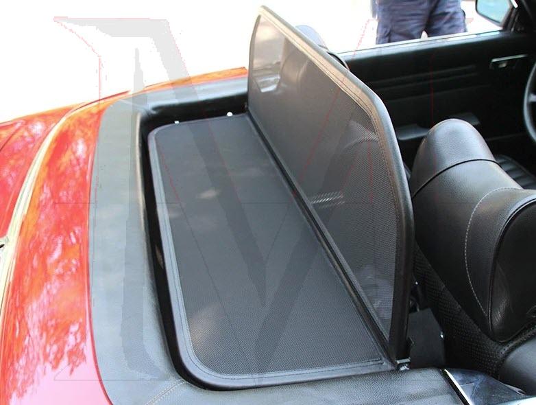 AVAIL 4-5 DAYS FROM GERMANY METAL FRAMED, FINE BLACK MESH SCREEN MOUNTED BEHIND SEATS ATTACHED TO SOFT TOP COMPARTMENT LID TO REDUCE DRAFTS AND WIND NOISE. ALLEVIATES BACK DRAFT AND WIND BLOWN LOOK. EASILY REMOVED AND FOLDS FOR EASY STORAGE IN TRUNK.
